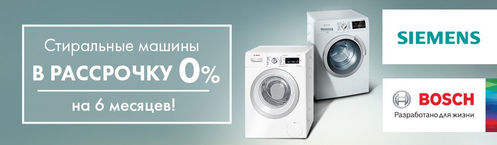 Рассрочка 0% на 6 месяцев на стиральные машины Bosch и Siemens