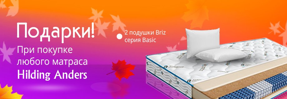 При покупке любого матраса Hilding Anders 2 подушки Briz серия Basic в подарок!