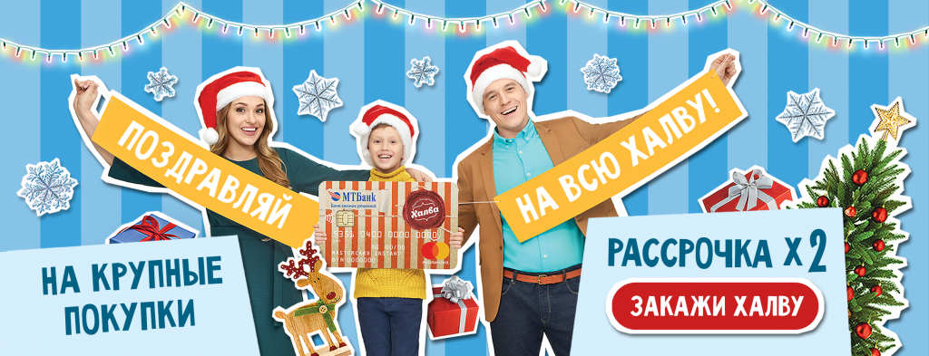 С 1 по 31 декабря совершайте крупные покупки по вашей карте Халва в любых магазинах-партнерах и получайте увеличенную рассрочку.